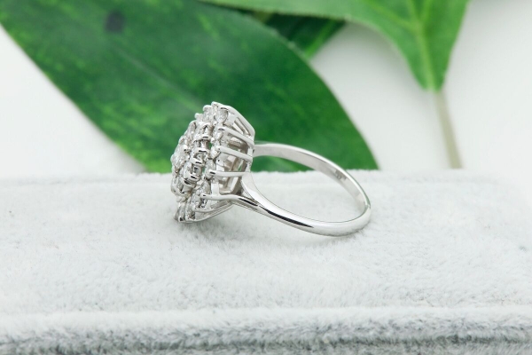 Chiếc nhẫn này được thiết kế tinh xảo với viên kim cương chủ đạo được bao quanh bởi những viên kim cương nhỏ hơn, tạo nên một hiệu ứng halo lấp lánh. Vàng trắng 18k là chất liệu chủ đạo, mang đến sự sang trọng và quý phái cho người đeo. Đây sẽ là lựa chọn hoàn hảo cho những dịp đặc biệt như đám cưới hay sự kiện quan trọng.